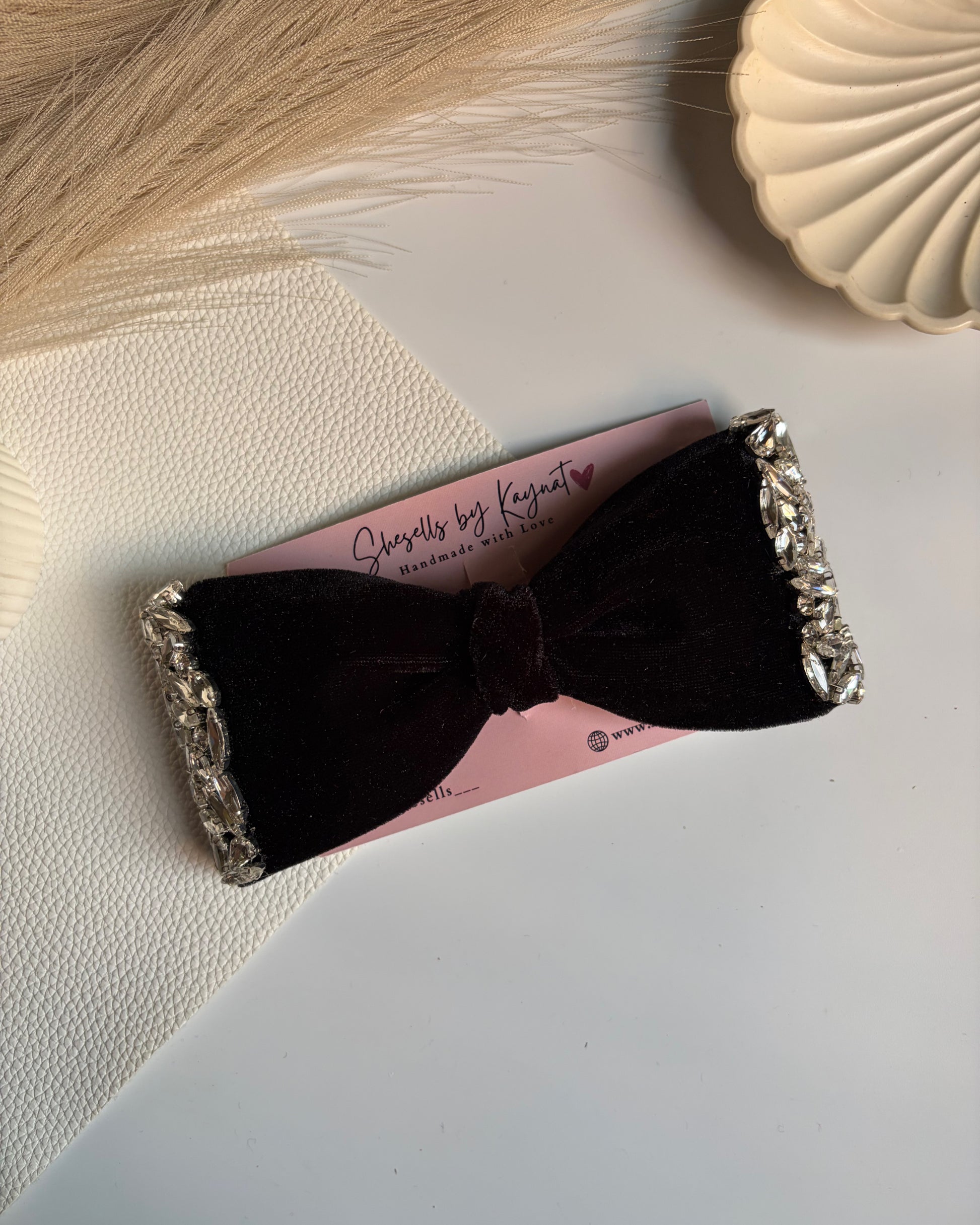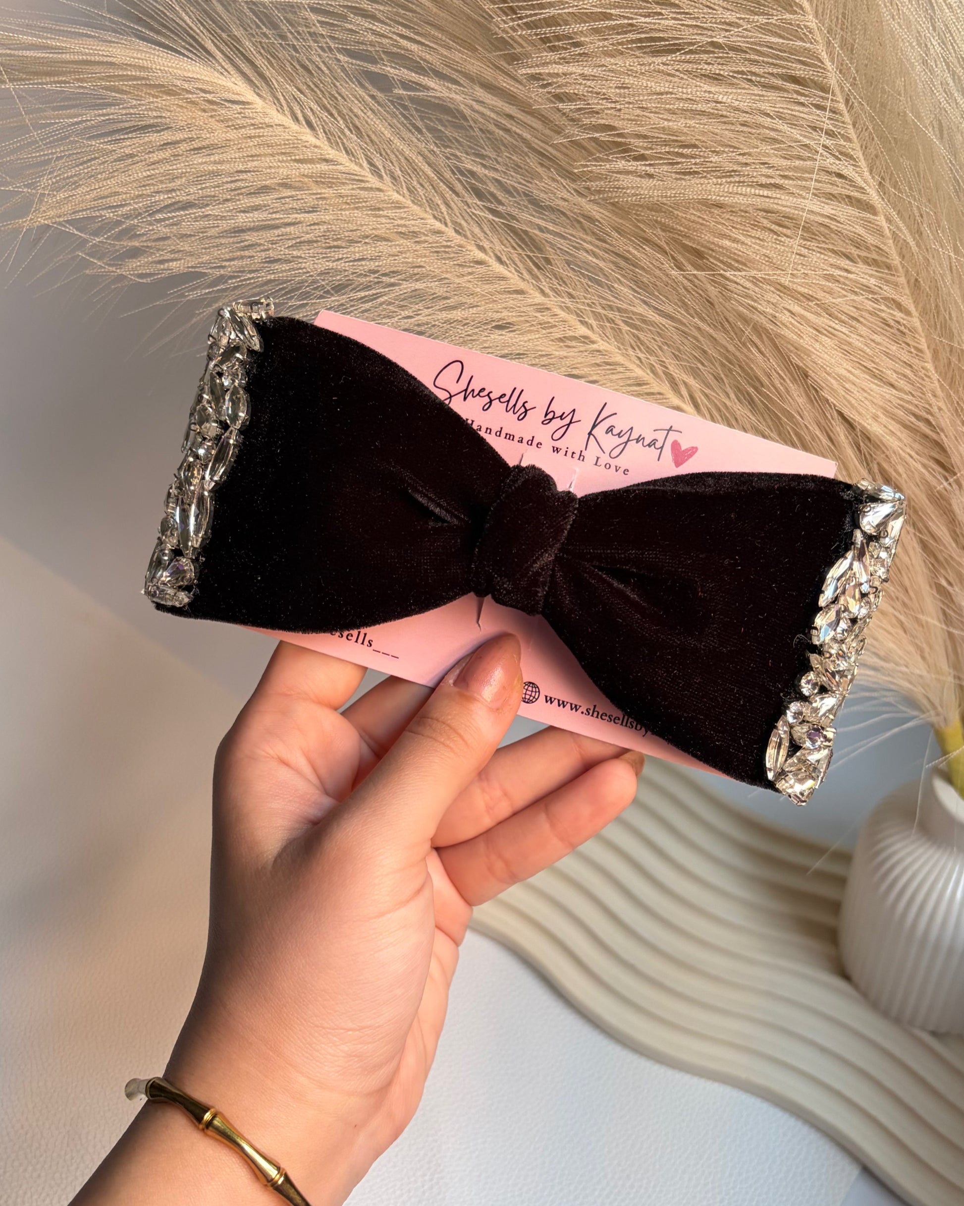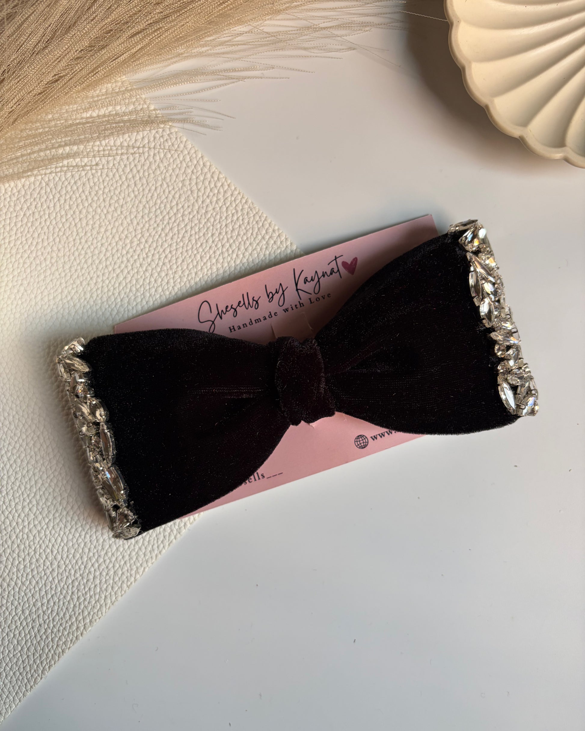 Elevate your hairstyle with our luxurious Velvet Crystal Bow, crafted from rich, soft velvet and finished with a delicate crystal trim for the perfect festive sparkle.